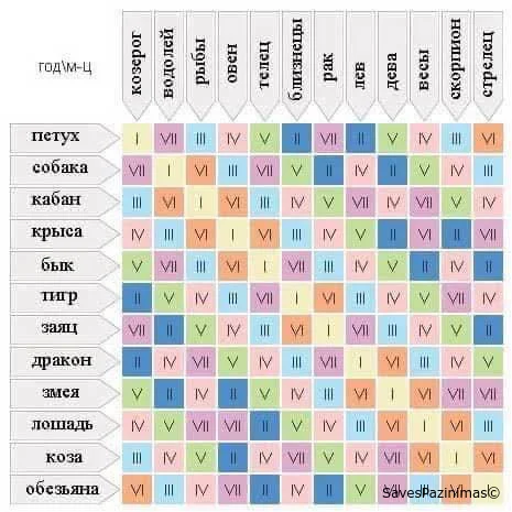 Выяснить это легко: в вертикальной колонке найдите своего покровителя по восточному гороскопу (по году рождения), а в горизонтальной - свой знак Зодиака.